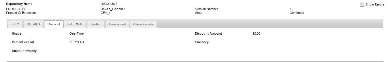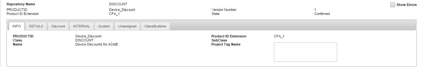 We now create a Price Discount object specific to ACME Worldwide and referencing the above standard price objects. We create a discount of 10 Percent for One-Time charges (for example, the price of the device). We make the Discount require the Party "ACME Worldwide", and attach it to the Standard Price Objects that we want the discount to apply to. Finally, we also add the discount to the CFA_1 Corporate Framework Agreement: