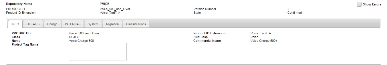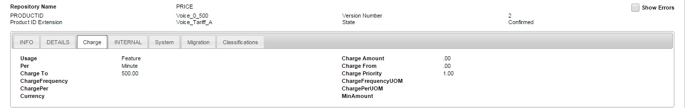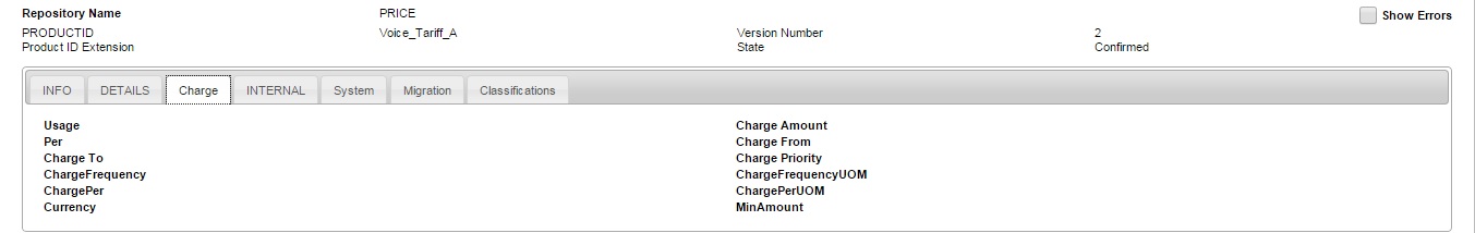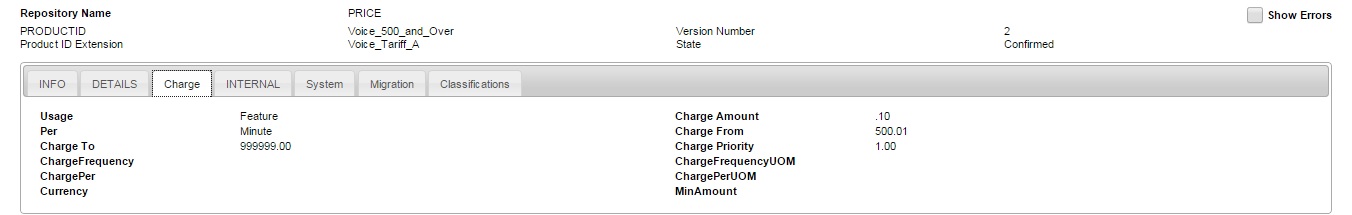 Typically, a Tariff price is composed of a price matrix of charge "bands". A Voice Tariff, for example might be composed of two charge bands: