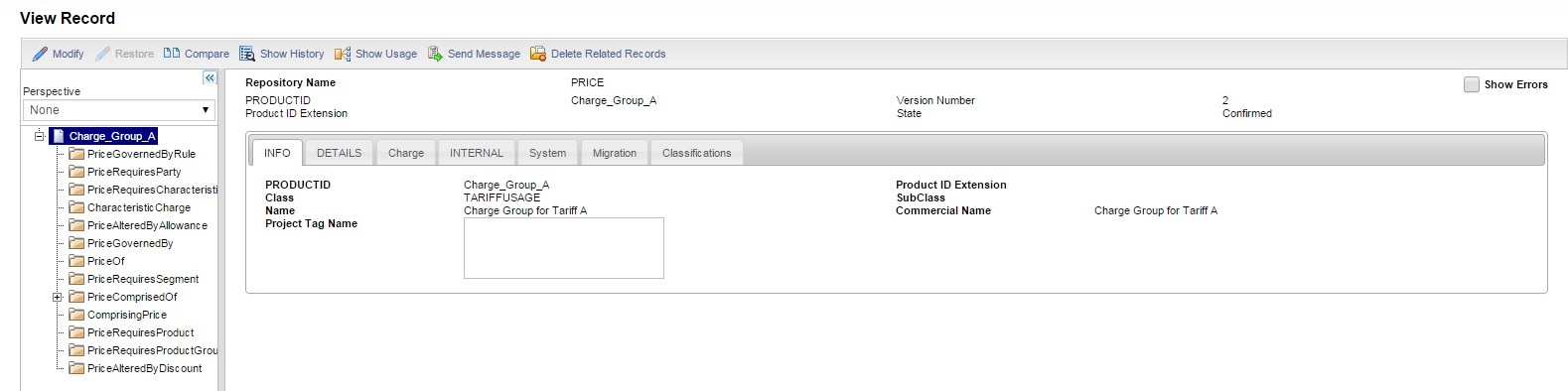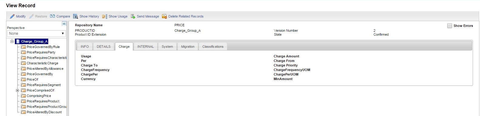 A simple price or usage charged is defined as Product Offering Price record. In the case of a Usage Charge, the type of usage is captured in order to match the usage fee to the feature being used: