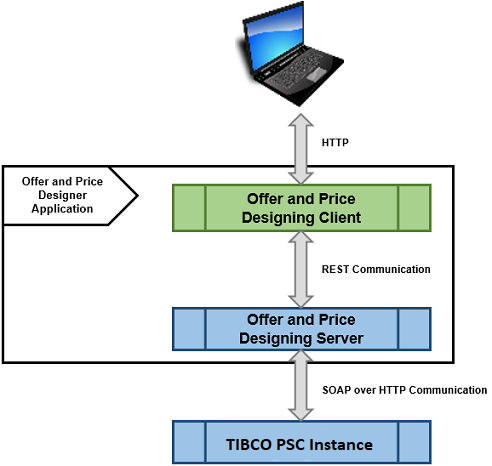 - A server part, which communicates with the TIBCO Product and Service Catalog instance using SOAP over HTTP and providing the client part with a REST API. The server role is to aggregate and process data back and forth between the client user interface, and the TIBCO Product and Service Catalog instance.
