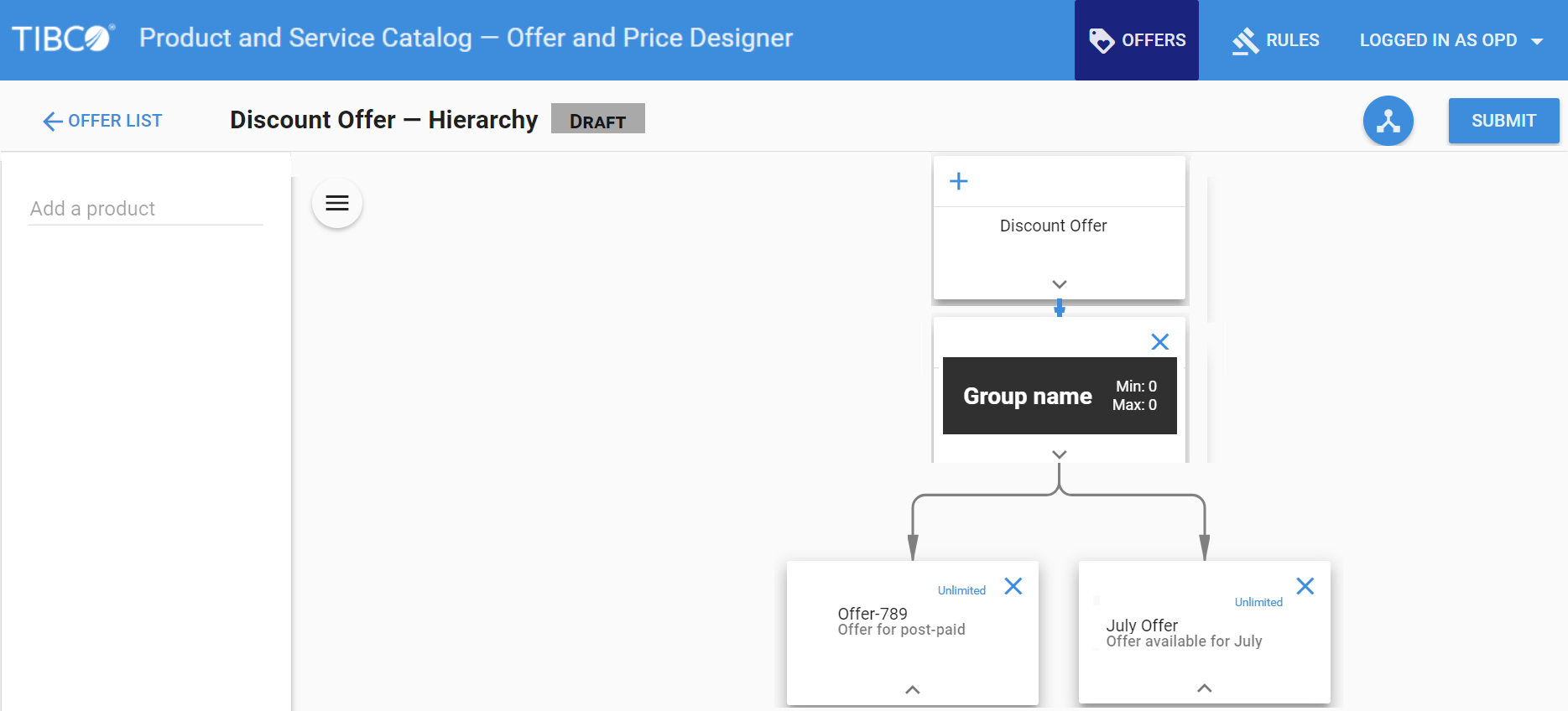 Drag the added product to the child node.
