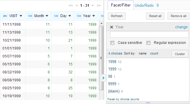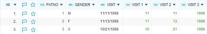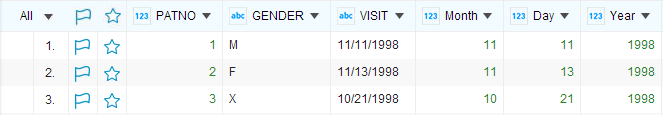 Take the project in the Sample-patients dataset as an example. The VISIT column provides the visit date information of each patient. However, because the entire date information (month, day and year) is in one column, it is hard to display a facet that shows the statistics concerning the number of visits per month or per year.