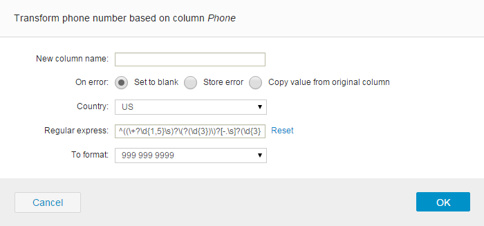 5. In the Regular express field, specify the pattern of phone number or accept the default expression.