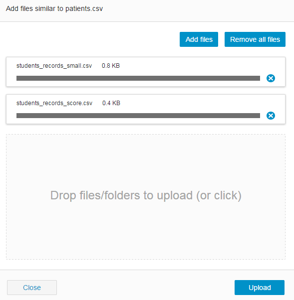 Add files to select the files to be uploaded, or directly drag the files to be uploaded to the