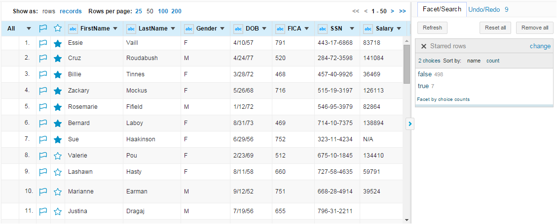 You can facet the rows marked with stars. Stars can be used to mark good or favorite rows that you want to pick up.