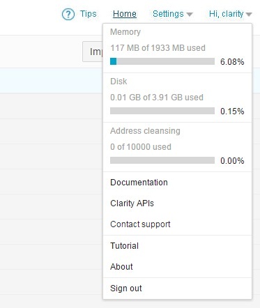 - Displays the quota of the address cleansing function.