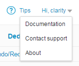 - Click Contact support to get help from TIBCO support, restart TIBCO Clarity, or to terminate a TIBCO Clarity instance.