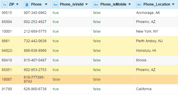 Use this function to validate whether the phone numbers in the specified column are valid, whether they are mobile phone numbers, and where they are located.