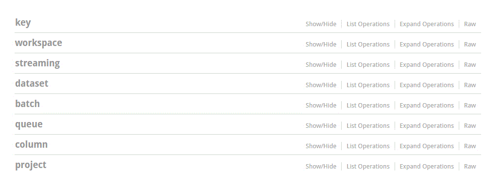 - The streaming group contains APIs used to manage streaming batch jobs, such as start a new streaming batch job, delete a streaming batch job, or query streaming batch jobs.
