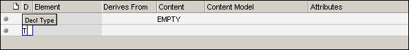 6. Later in this exercise you'll use the “Derives From” column to extend the Address complex type. For now, however, we can bypass this field, and tab to the Content field. The content will default to “Elements”, which is the desired content. (Other content types could be selected by way of the menu presented by clicking the Content Type button.)