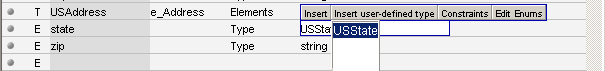8. In the row for the element state, navigate to the Data Type column. Click Insert user-defined type and select USState from the menu of optionsFigure 46 Insert User-defined Data Type.