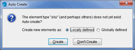 Figure 72 Auto Create Dialog BoxAs it is currently defined, all elements are required. In some instances, you may want an element to be optional. For the purposes of this exercise, description will be made an optional element.