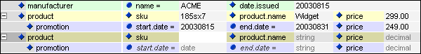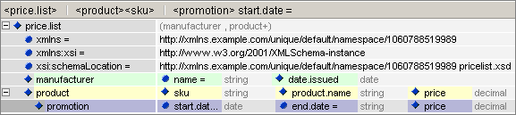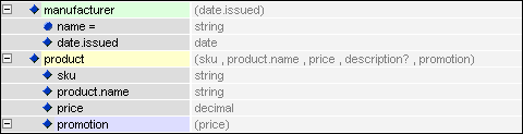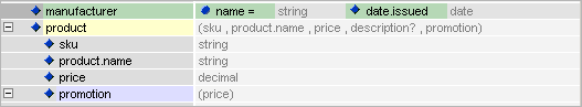 3. Now you can promote the child elements as well as the attributes of manufacturer to make the entry of data easier and the document view more manageable.