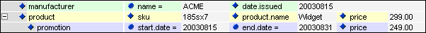 2. Use the same procedure to highlight the product element in yellow and the promotion element in blue.Figure 98 Highlight the Product Element