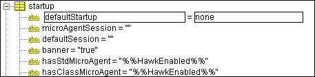 5. To change the value of a property inside an attribute, triple-click the property to select it, then type the new value into the edit field that opens. In the screen shot below, the defaultStartup property of the startup attribute is being edited.Figure 121 Change Value of a Property