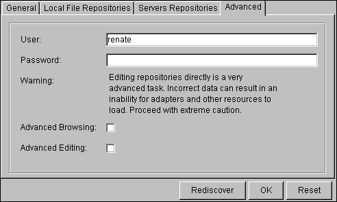 2. With the Repository Finder selected, click the Advanced tab in the configuration panel.Figure 119 Advanced Tab in Configuration Panel