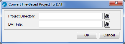 Displays a dialog that lets you specify the .dat file you wish to convert and the folder for the multi-file project. Because a.dat file is a legacy format, you must convert it to a multi-file project before you can open a project from TIBCO Designer. Displays a dialog that lets you choose a project directory and a .dat file. When you specify both, TIBCO Designer converts the multi-file project in the directory to the .dat file.
