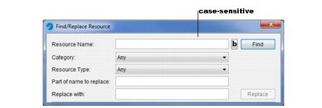 Displays the Find/Replace Resource dialog, which allows you to find resources and replace parts of their name.