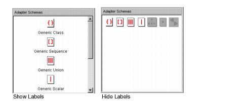• Hide Labels/Show Labels—By default, each resource in each palette includes a label. If you select Hide Labels, the labels are removed.