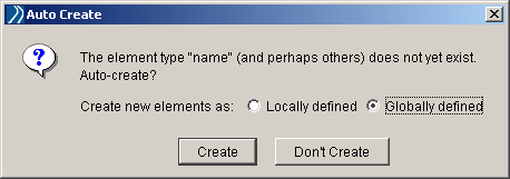 3. Tab from this field. The Auto Create dialog box appears. Click the Globally defined button, then click Create. (For the purposes of this exercise, all declarations will be global.)