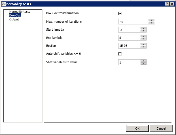 Box-Cox transformation, which transforms the selected variables so that they are as close to normal as possible. The transformed variables are then available as a downstream document.