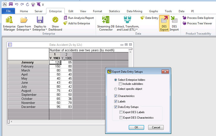 In order to easily manage large numbers of objects in a Statistica spreadsheet,as an Enterprise Administrator, you can export Enterprise spreadsheet data entry setups, labels and characteristics to Excel files to manipulate and manage large numbers of objects, and import the updated objects back into the Statistica spreadsheet.