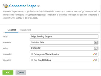 - Drop in a new StatisticaConnector node/shape into the integration process canvas to display a Connector Shape configuration: