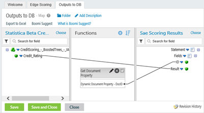 NOTE: Using the Set Document Property and Get Document Property functions is one way that you can configure pass-through of input data fields not participating in the model scoring process to the output map, such as for subsequent writeback to the database.