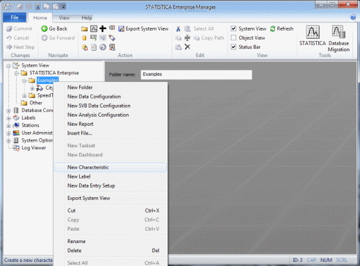 Next, create a new Characteristic object. Right-click on the folder in the tree view, and select New Characteristic.