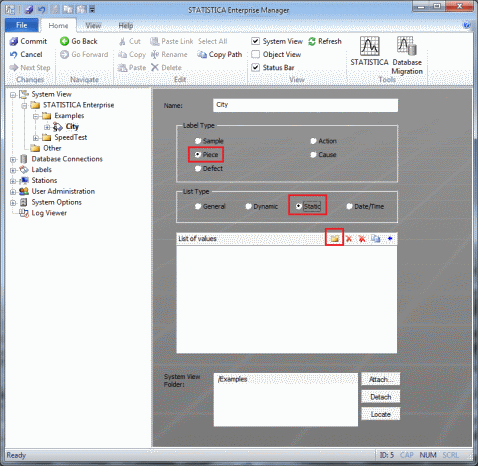 Now we need to specify the different possible label values from which users may choose. Click the yellow folder icon at the upper-right of the List of values box.