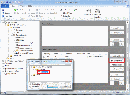 The selected Characteristic will be displayed in the Labels/Characteristics list box.