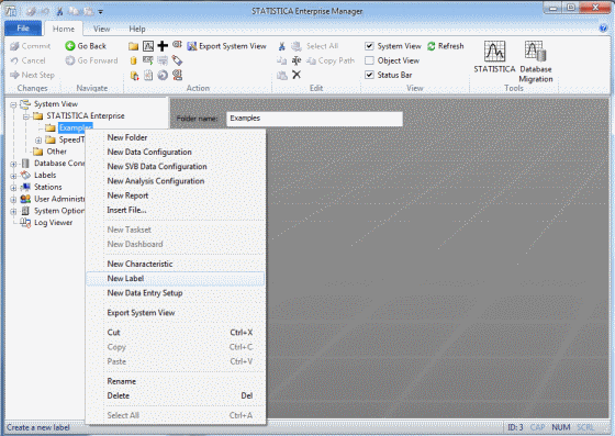 To create a Label, right-click on a folder, and select New Label.