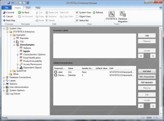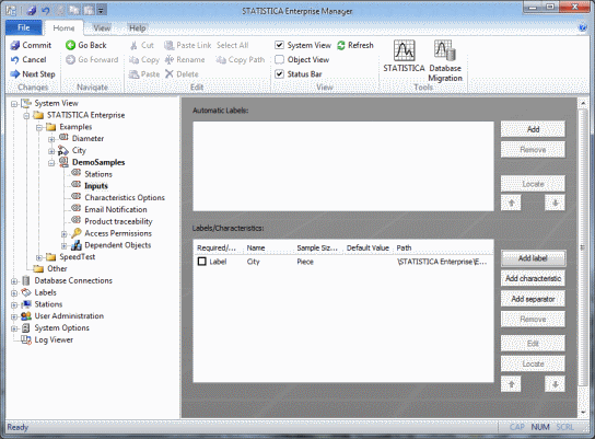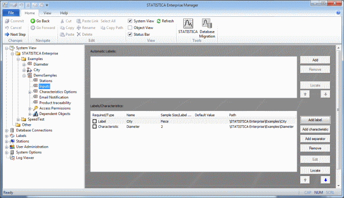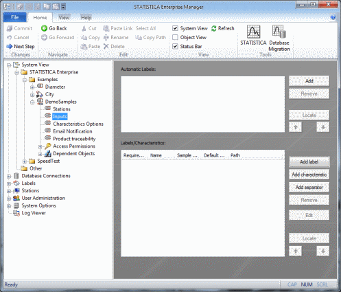 A Data Entry Setup contains two types of objects: Characteristics and Labels. So we must first create Characteristics and Labels that will be inserted into Data Entry Setups.