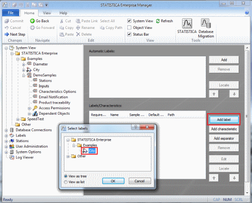 The selected Label will be displayed in the Labels/Characteristics list box.