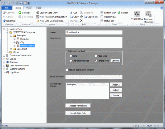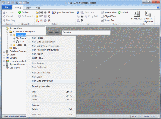To prepare for that use case, we must create a Data Entry Setup. A Data Entry Setup is another type of object we can create in the STATISTICA Enterprise Manager, analogous to a Data Configuration.