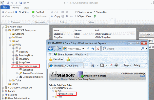Notice that the Data Entry Sequence object ProcessReadings is available, but not the Data Entry Setup objects StageOne and StageTwo.
