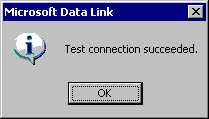 Click the Test Connection button. A prompt will be displayed that acknowledges that the Test connection succeeded (if it doesn't succeed, check your access permissions to the file and check your MDAC installation).