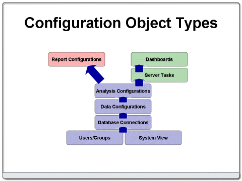 The configuration objects in STATISTICA Enterprise have the following dependencies: