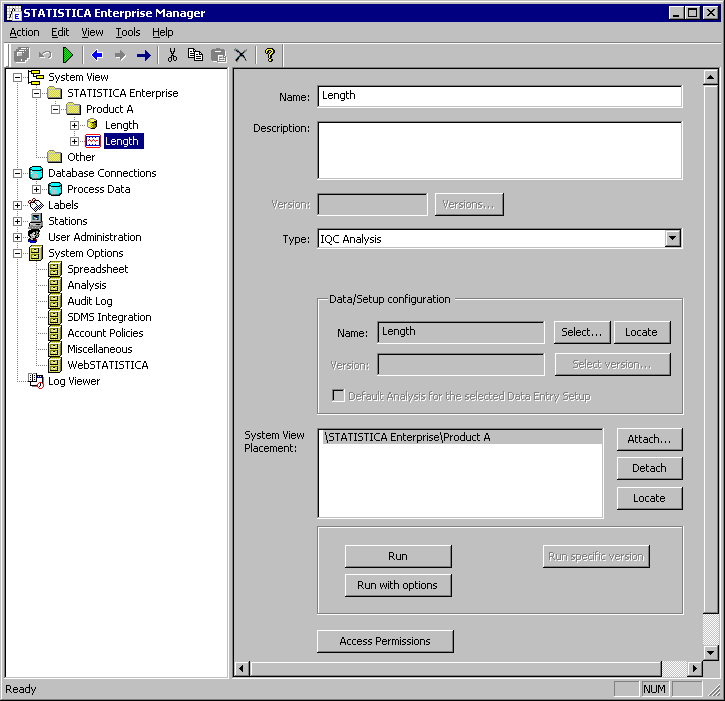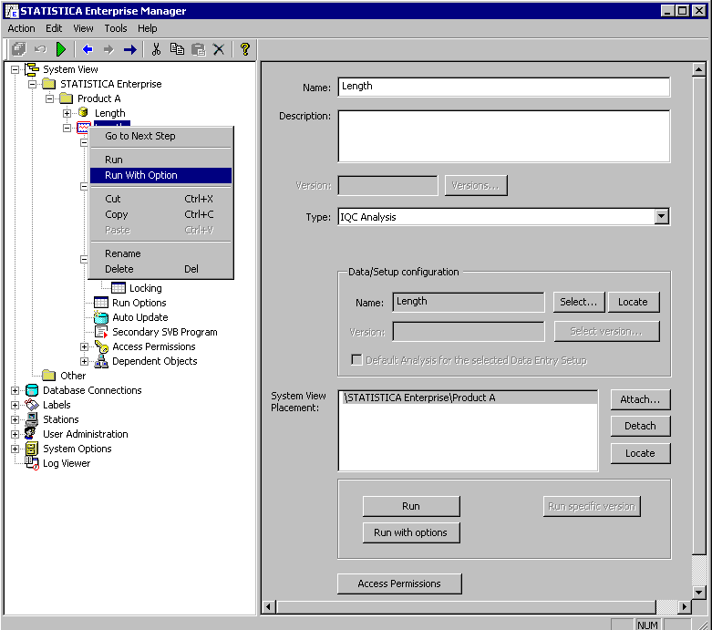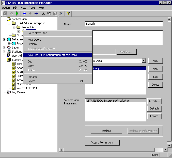 Log on to Enterprise Manager. To begin, right-click on the Data Configuration (Length) set up in the previous example, and select New Analysis Configuration off this Data.