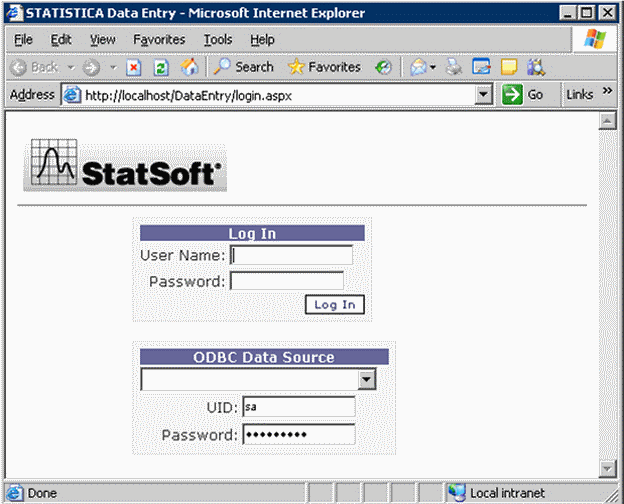Statistica Web Data Entry begins with user authentication, typically integrated with the user’s network user account.