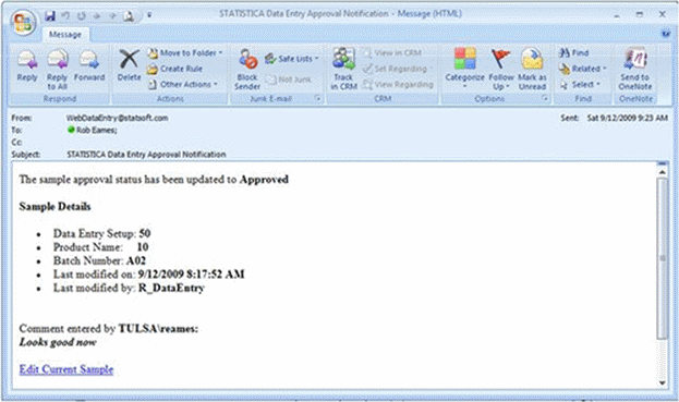 Statistica Web Data Entry includes the checking of user-entered data to ensure the values are within reasonable ranges for the respective Characteristic. Statistica Web Data Entry includes a review and approval step to enable second-person verification of user-entered data. Approval steps include automated email notifications communicating the approval status for each data sample.