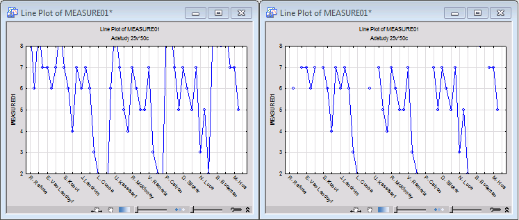 Ignore missing data. When missing data are present, a discontinuous line is drawn for that plot. You can elect to ignore missing data by selecting this check box, and a continuous line will then be drawn for that plot.