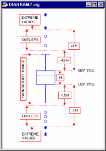 For example, the following diagram illustrates the ranges of outliers and extremes in the "classic" box and whisker plot (for more information about box plots, see Tukey, 1977).
