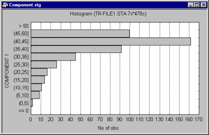 All Graphs menu graphs histogram procedures offer the standard selection of categorization methods. Those categorization methods divide the entire range of values of the examined variable into a number of categories or sub-ranges for which frequencies are counted and presented in the plot as individual columns or bars (horizontal bars are plotted when the X-Y Axis Position box on the Options 2 tab of the graph specification dialog is set to Reversed).