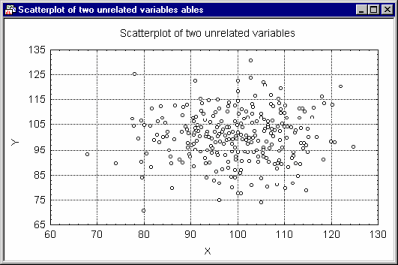 Scatterplots are typically used to explore or identify the nature of relations between two variables (e.g., blood pressure and cholesterol level), because they can provide much more information than a correlation coefficient. For example, a lack of homogeneity in the sample from which a correlation was calculated can bias the value of the correlation. Imagine a case where a correlation coefficient is calculated from data points which came from two different experimental groups, but this fact was ignored when the correlation was calculated. You can assume that the experimental manipulation in one of the groups increased the values of both correlated variables and thus the data from each group form a distinctive "cloud" in the scatterplot (as shown in the illustration below).