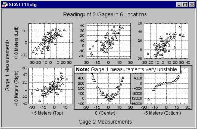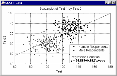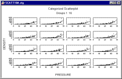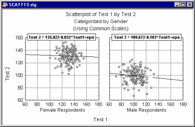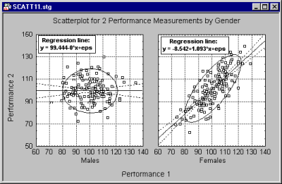 The categorized scatterplot option allows you to produce scatterplots categorized by one or two variables. Via the Multiple Subsets options, you can also categorize the scatterplot based on logical selection conditions that define each category or group of observations.