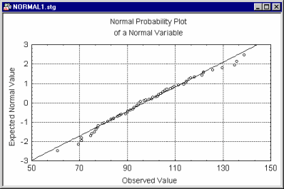 These Z values are plotted on the y-axis in the plot. If the observed values (plotted on the x-axis) are normally distributed, then all values should fall onto a straight line in the plot. If the values are not normally distributed, they will deviate from the line.