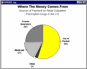 Slices of this pie chart can be labeled with case names, case numbers, or values of specific variables, and those labels can also include numeric information (e.g., percentages, see below).
