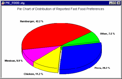 The pie chart (the term first used by Haskell, 1922) is one of the most common graph formats used for representing proportions or values of variables. Depending on the selected type of graph (see below), the pie chart will display either raw values or counts (i.e., frequencies) of specific categories of values (such as those which can be displayed in histograms.