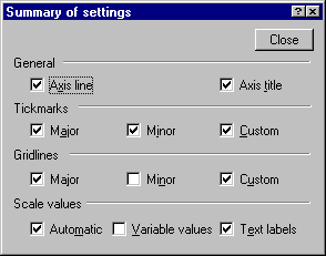 Clearly, the Axis Display property cannot be summarized by assigning to it a single value, and the individual check boxes on this dialog are not associated with separate styles; they can only be saved collectively (as a property).